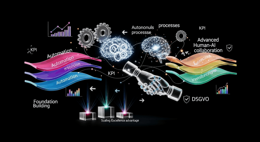 Inhaltsverzeichnis Was macht eine KI-reife Organisation aus? Die Anatomie einer KI-reifen Organisation Technische Infrastruktur und Datenreife Kulturelle Transformation und Change Management Strategische Führung und Governance Erfolgsfaktoren im Detail Mitarbeiter-Enablement als Fundament Use-Case-orientierter Ansatz statt Tool-Fixierung Datenschutz und Compliance als Enabler Reifegradmodell für KI-Organisationen Stufe 1: Experimentell Stufe 2: Pilot-orientiert Stufe 3: Skaliert Stufe 4: KI-nativ […]